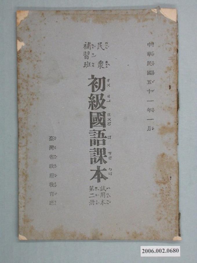 臺灣省政府教育廳發行《民眾補習班初級國語課本試用本》第二冊