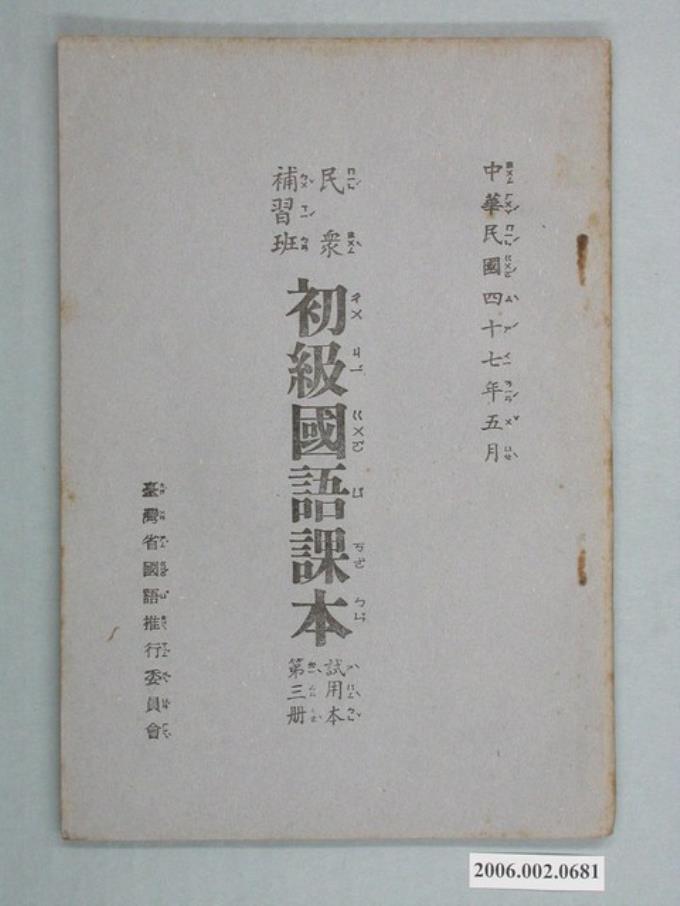 臺灣省政府教育廳發行《民眾補習班初級國語課本試用本》第三冊