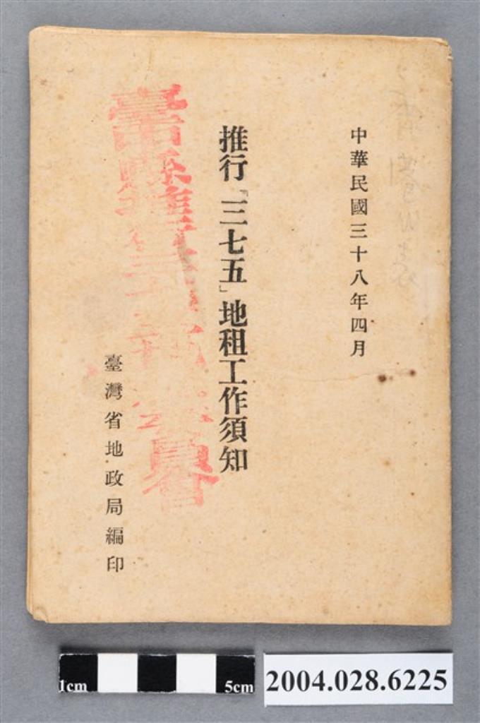 臺灣省地政局編印《推行「三七五」地租工作須知》
