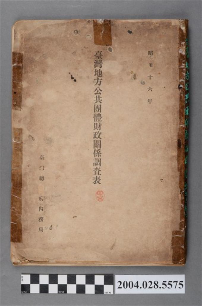 臺灣總督府內務局發行《臺灣地方公共團體財政關係調查表》