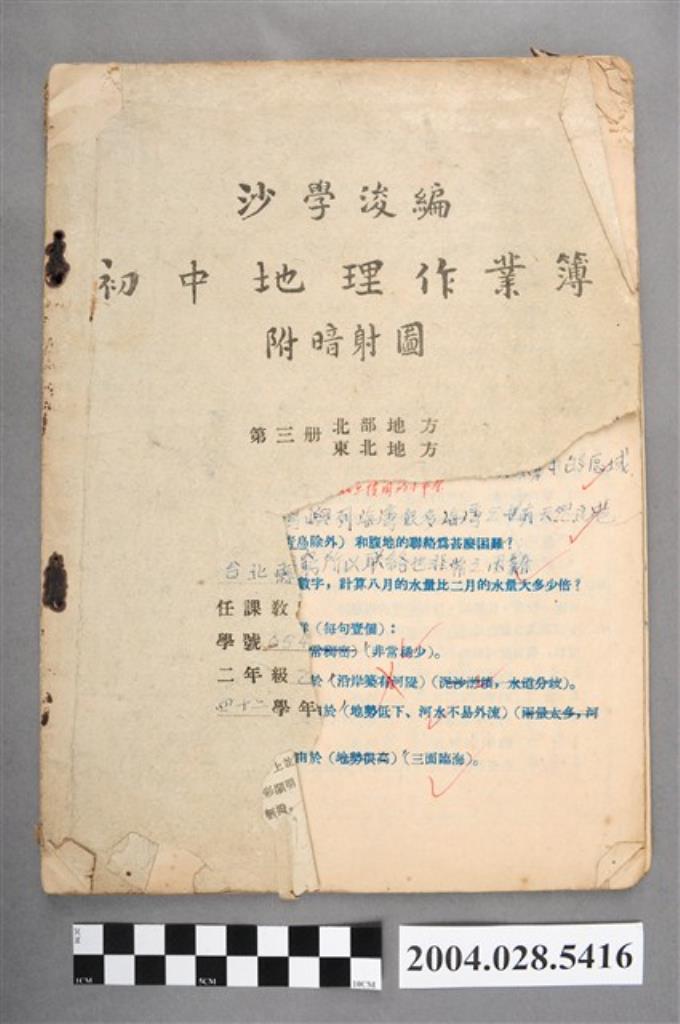 沙學浚編《初中地理作業簿附暗射圖》第三冊