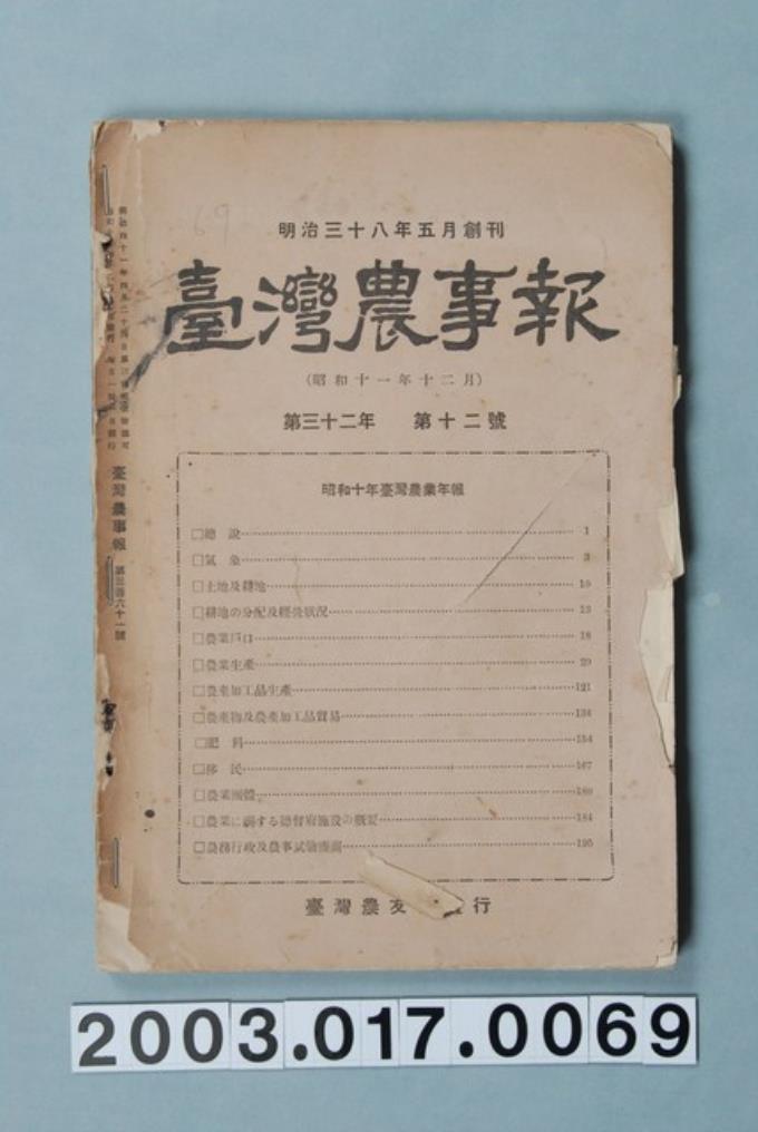 臺灣農友會發行《臺灣農事報》第32年第12號