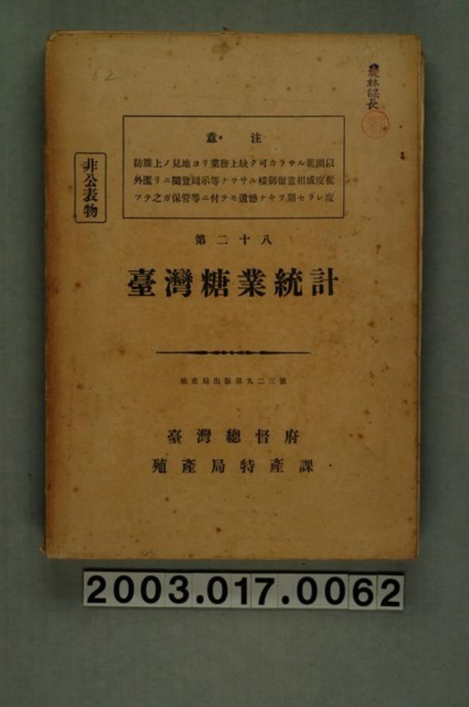 昭和16年11月15日第二十八《臺灣糖業統計》