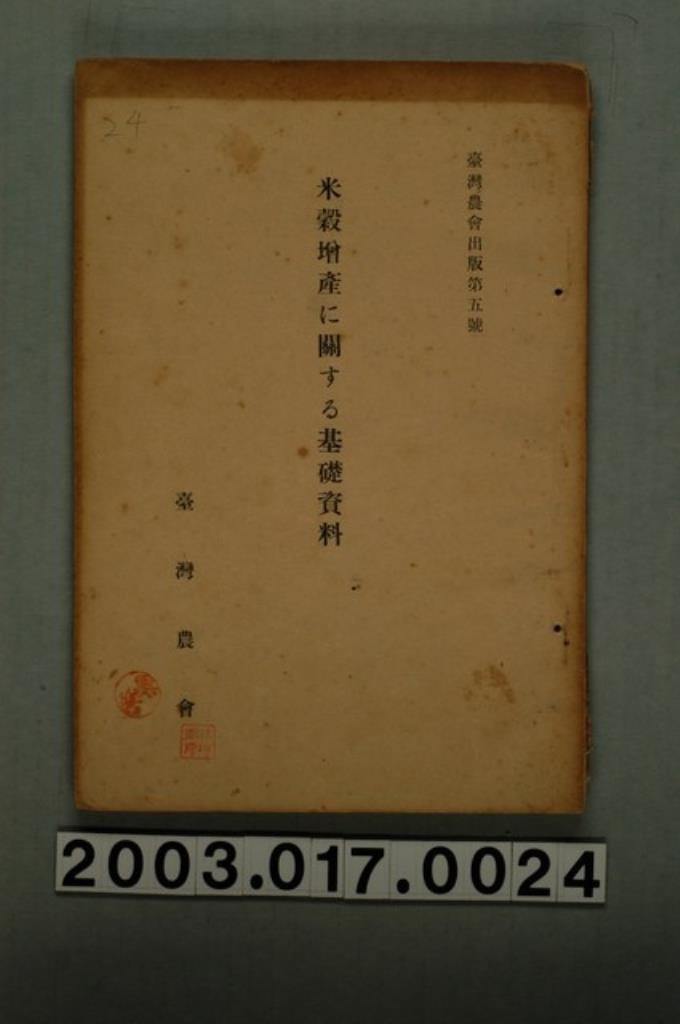 臺灣農會發行《關於米穀增產基礎資料》