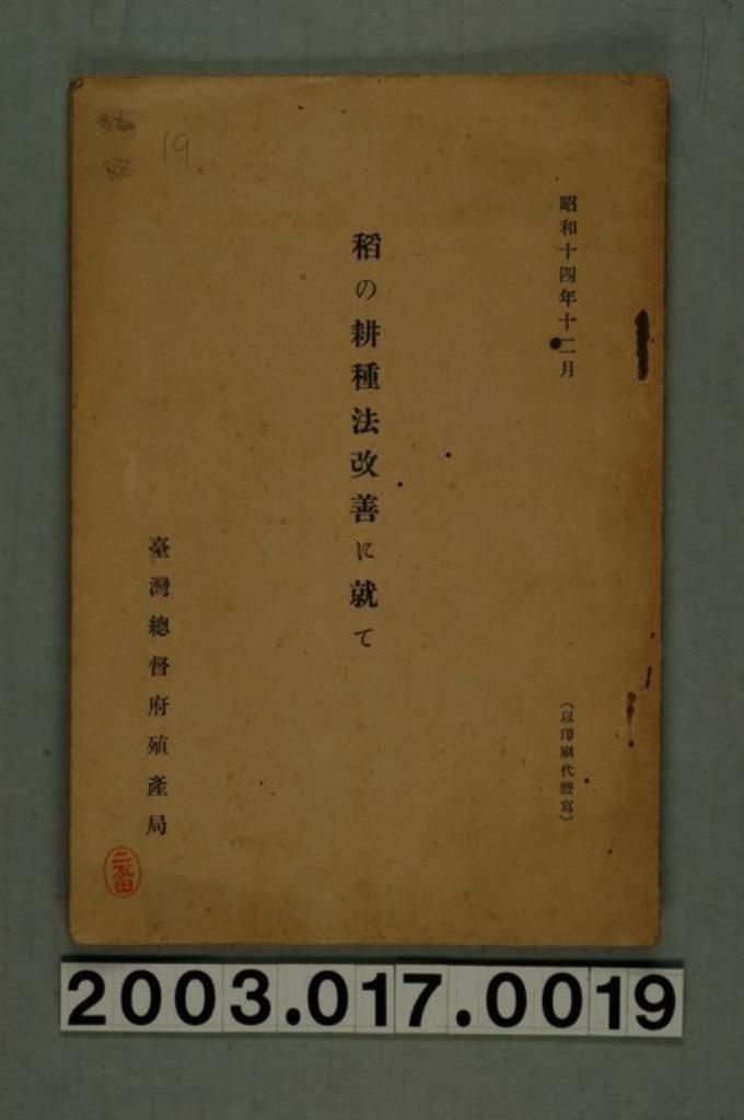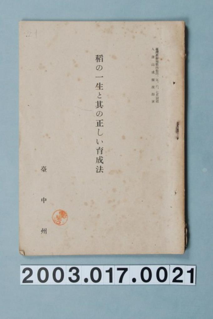 臺灣總督府殖產局發行《論稻之耕種法改善》