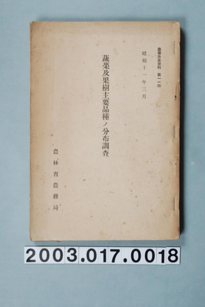 農林省農務局編纂《蔬菜及果樹主要品種之分布調查》