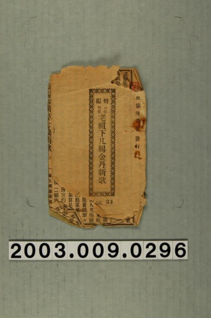 周協隆書店出版《特編三伯思想老祖下凡賜金丹新歌》