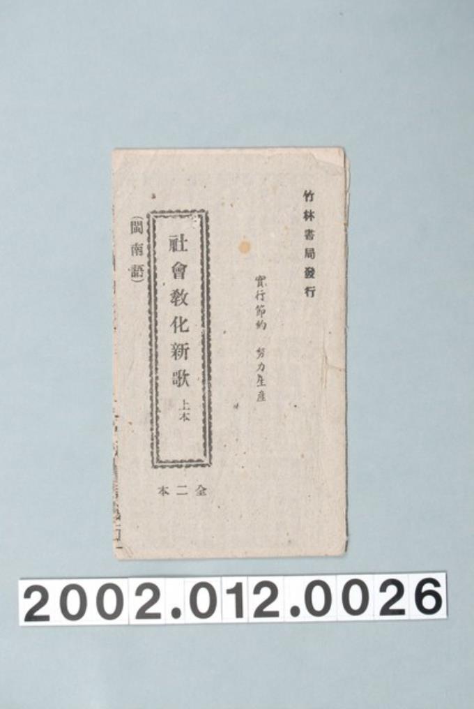 竹林書局出版《社會教化新歌》歌仔冊
