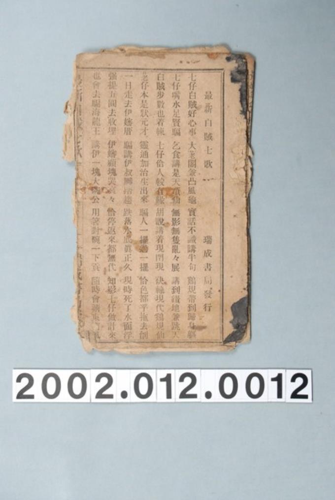 瑞成書局出版《最新白賊七歌》歌仔冊
