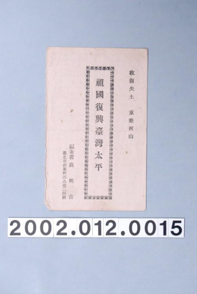 高明吉編《祖國復興臺灣太平》歌仔冊