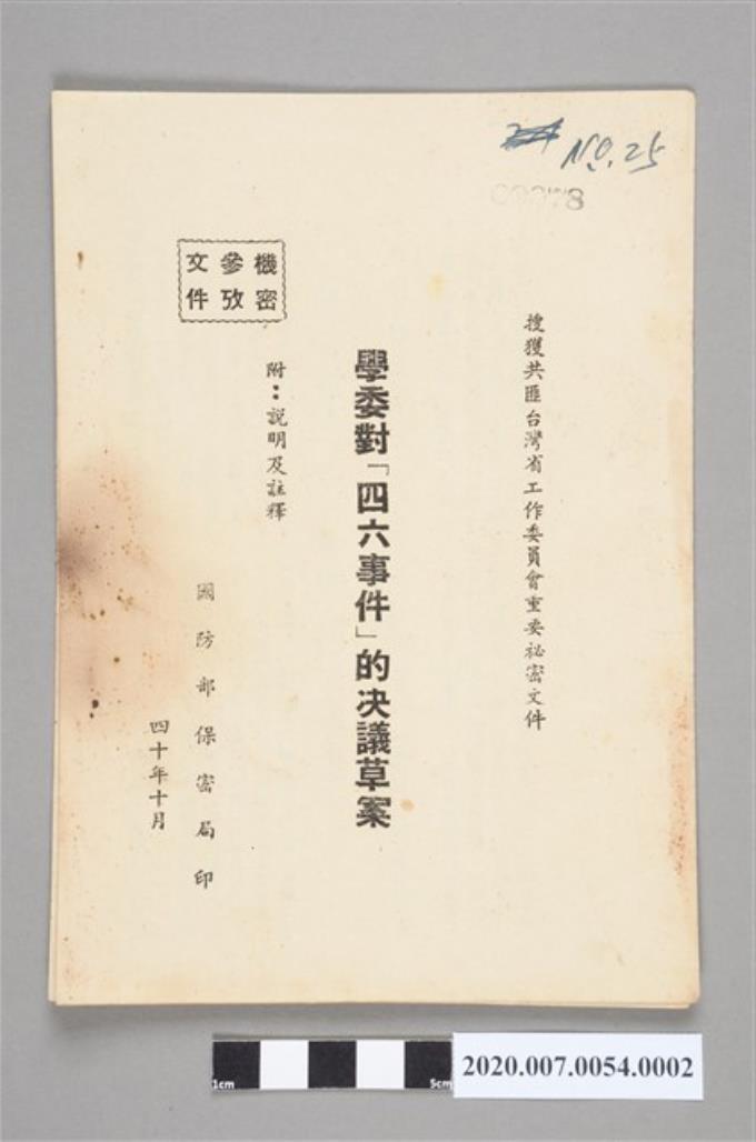 國防部保密局編印《學委對「四六事件」的決議草案》