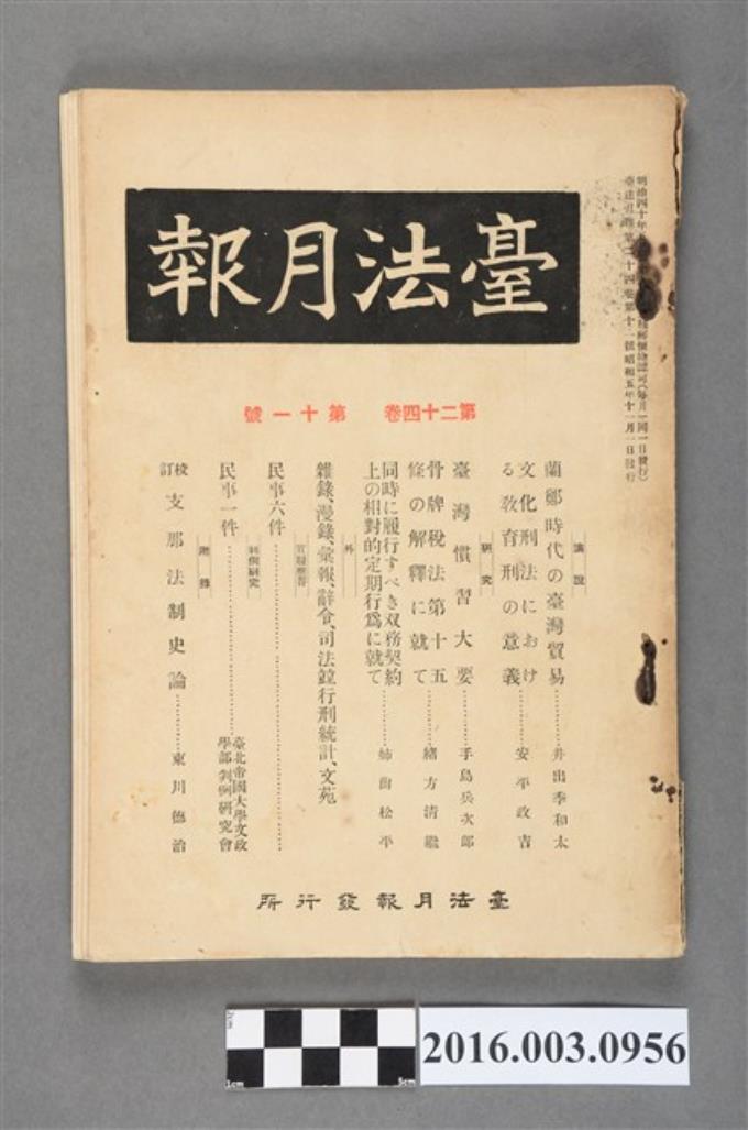 臺法月報發行所發行《臺法月報》第24卷第11號昭和5年11月1日