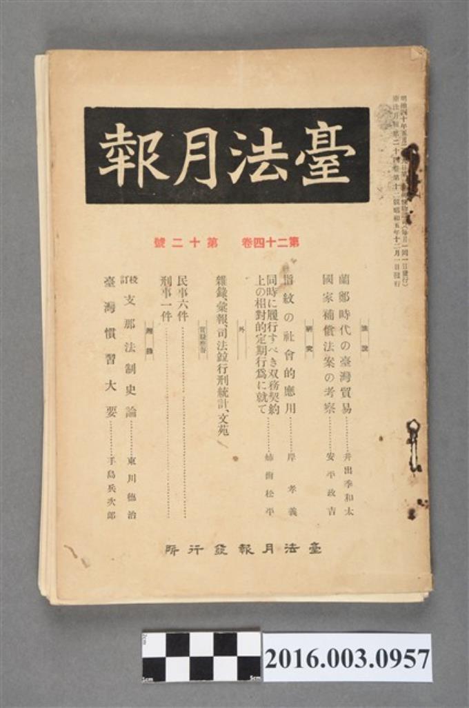 臺法月報發行所發行《臺法月報》第24卷第12號昭和5年12月1日