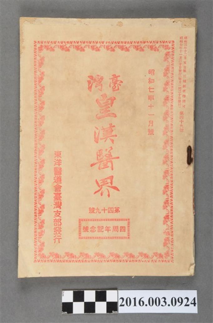 東洋醫道會臺灣支部出版《臺灣皇漢醫界》第49號昭和7年11月20日號