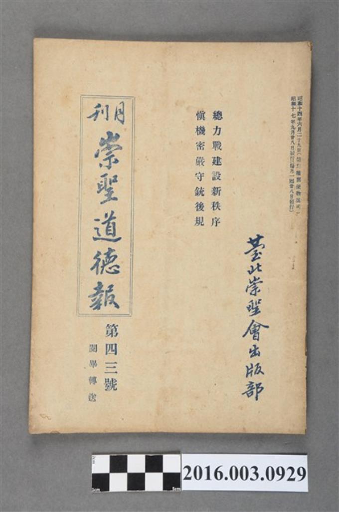 臺北崇聖會出版《崇聖道德報》月刊第43號昭和17年9月28日號