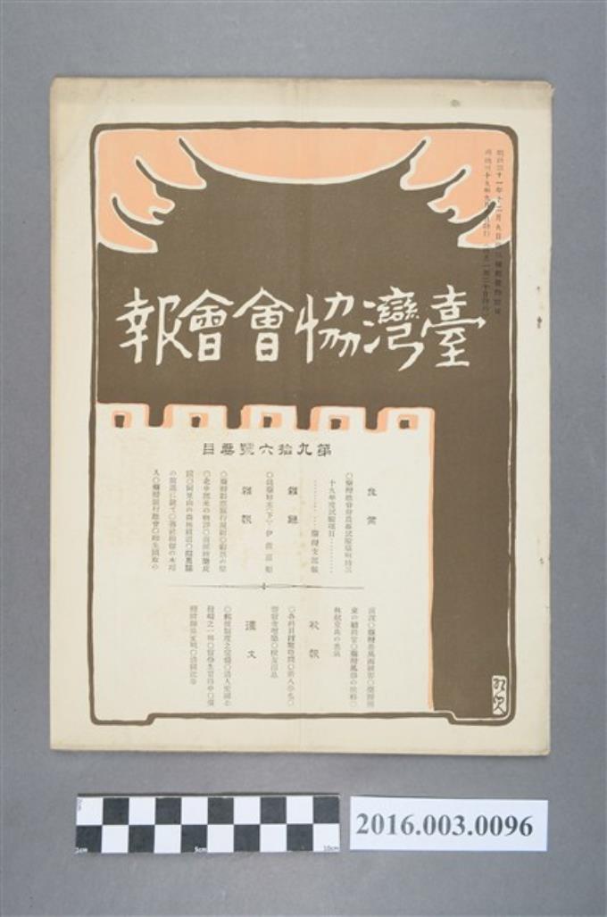 《臺灣協會會報》第96號明治39年9月20日