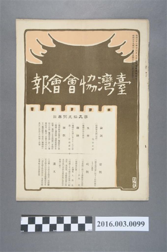 《臺灣協會會報》第99號明治39年12月20日