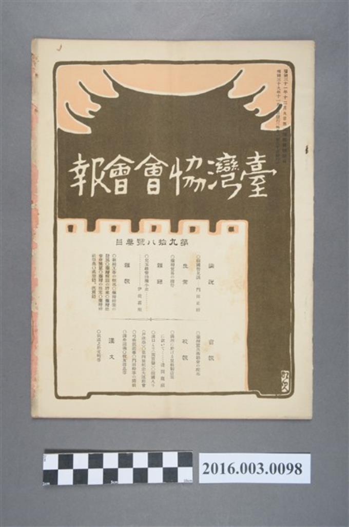 《臺灣協會會報》第98號明治39年11月20日