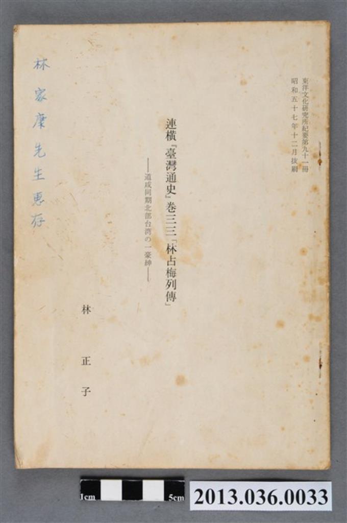 連橫臺灣通史卷三三林占梅列傳(林正子)昭和57年12月