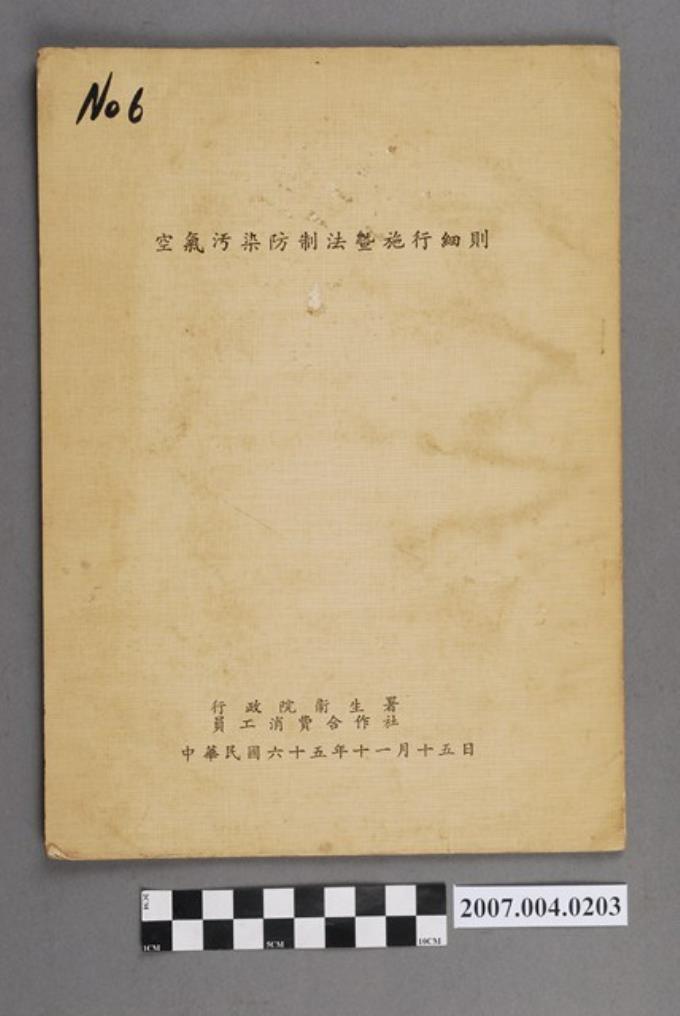 行政院衛生署員工消費合作社印行《空氣汙染防制法暨施行細則》