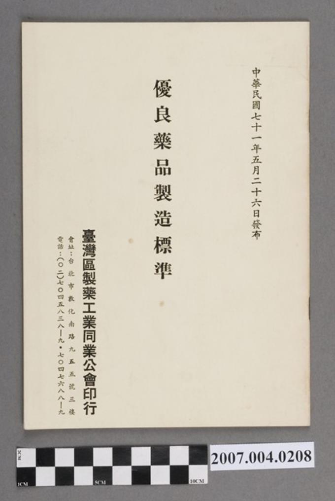 臺灣區製藥工業同業公會印行《優良藥品製造標準》
