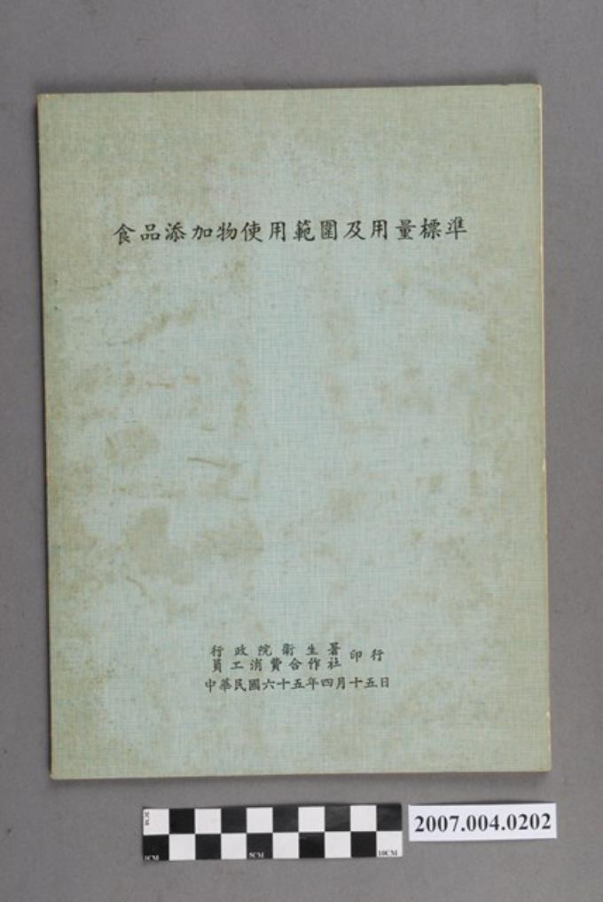 行政院衛生署員工消費合作社印行《食品添加物使用範圍及用量標準》