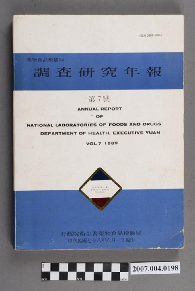 行政院衛生署藥物食品檢驗局編印《調查研究年報》第7號