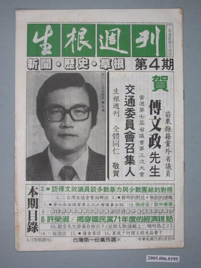 臺灣年代雜誌社出版《臺灣年代》週刊第6期