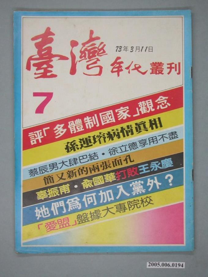 臺灣年代雜誌社出版《臺灣年代》叢刊第7期