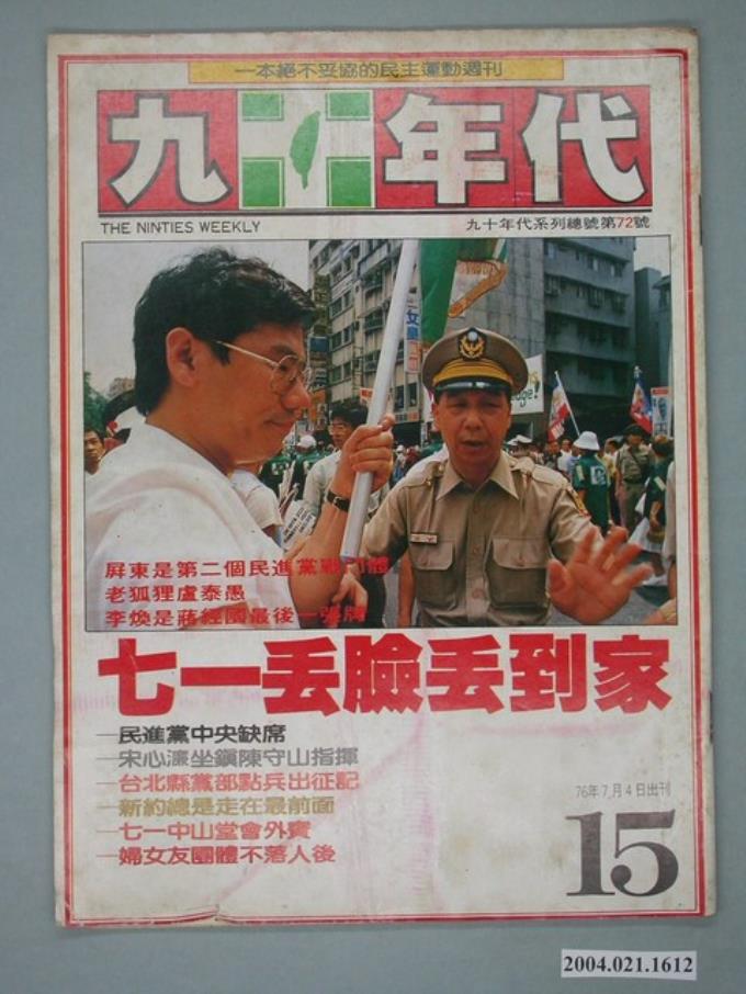 九十年代雜誌社出版《九十年代》週刊第15號總號72號