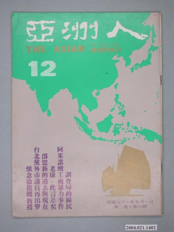亞洲人雜誌社發行《亞洲人》月刊第2卷第6期總號第12號