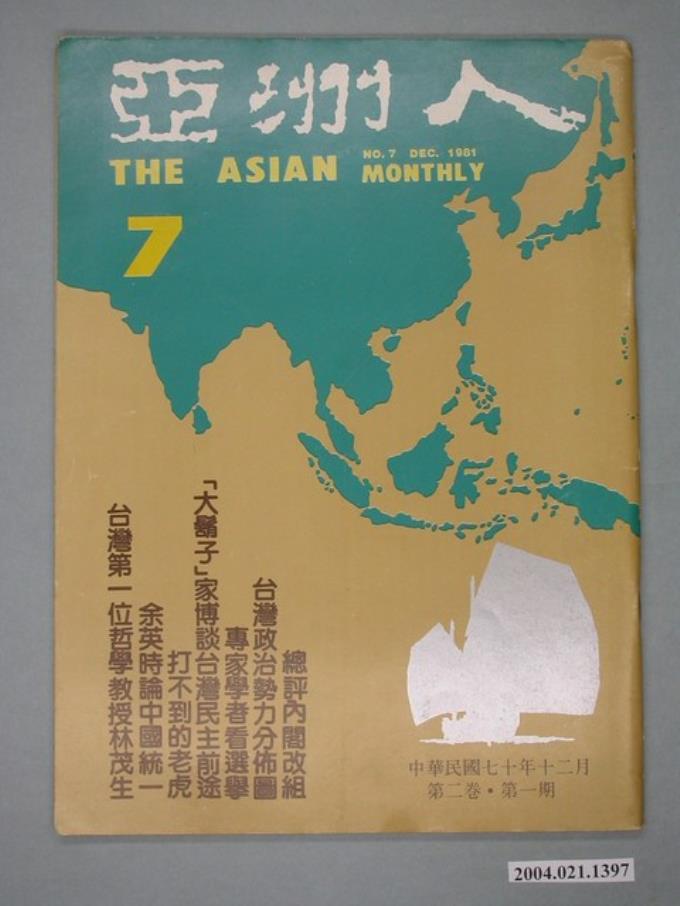 亞洲人雜誌社發行《亞洲人》月刊第2卷第1期總號第7號