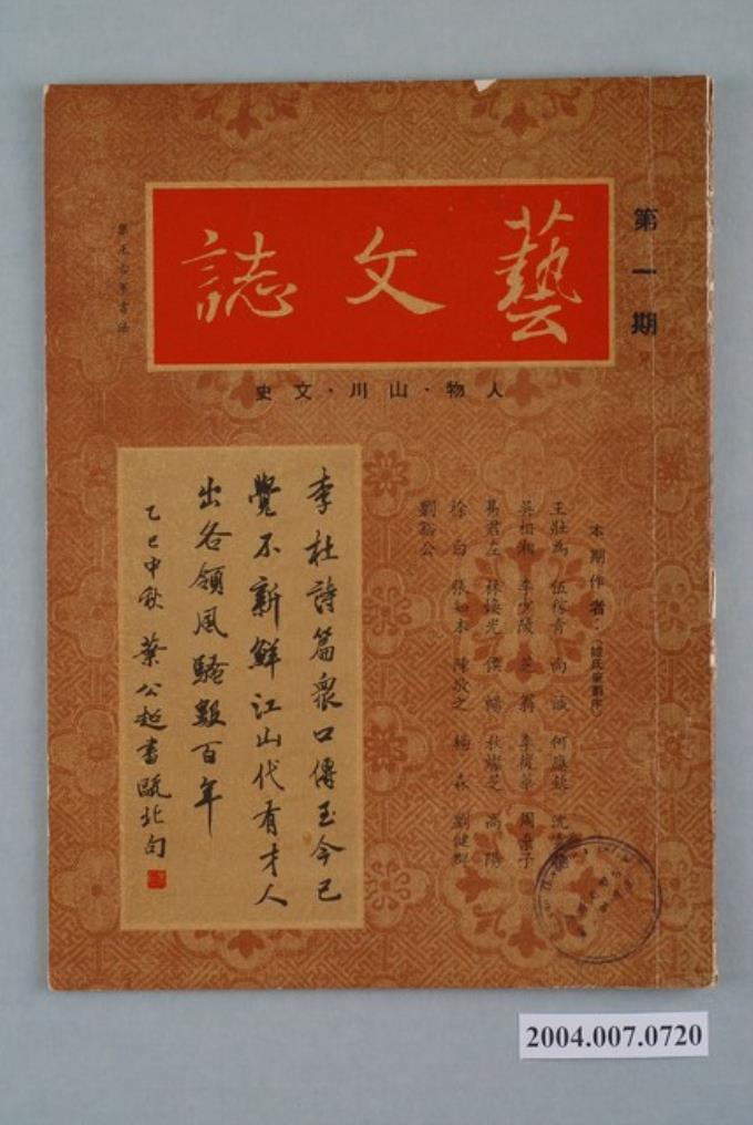 藝文誌月刊社發行《藝文誌》第1期10月號