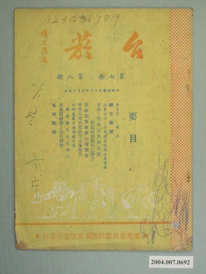 臺灣省菸葉耕種事業改進社發行《臺菸》第7卷第8期
