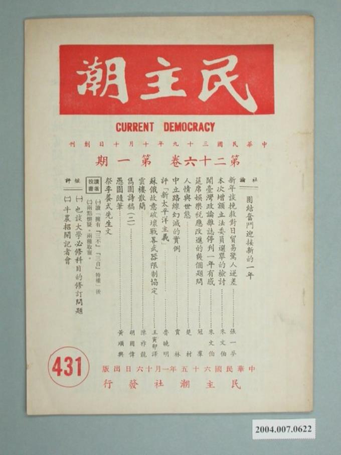 民主潮社出版《民主潮》雜誌第26卷第1期總號431號