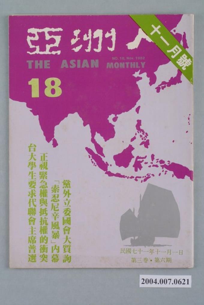 亞洲人雜誌社出版《亞洲人》月刊第3卷第6期總號18號11月號