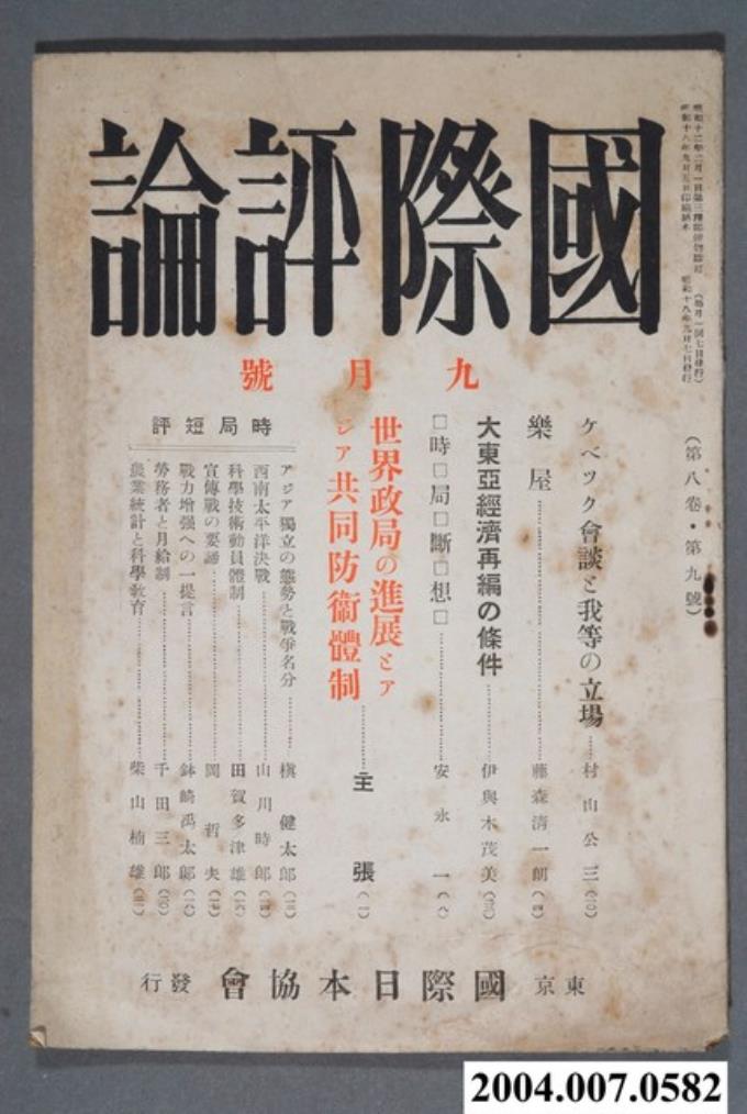 東京國日本協會出版《國際評論》第8卷第9號9月號