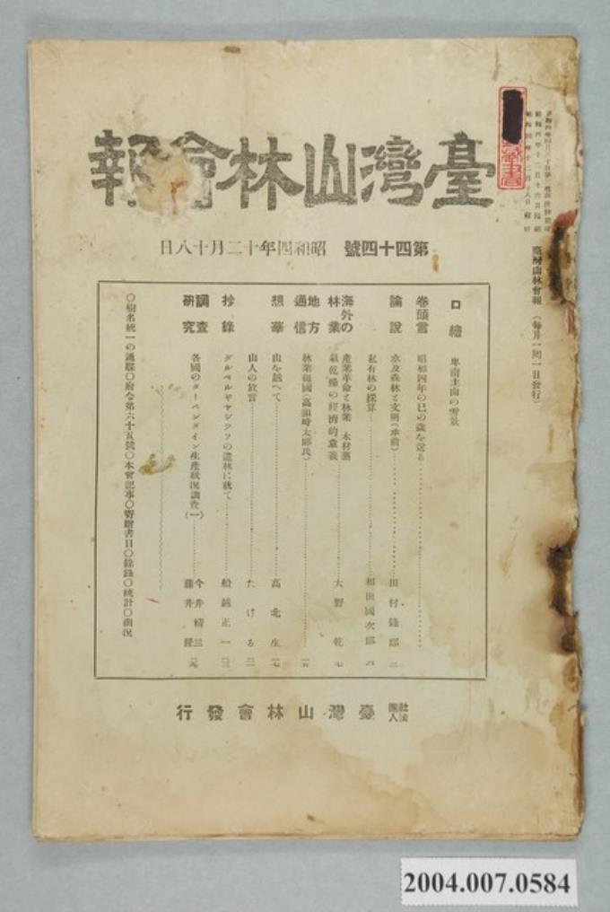 社團法人臺灣山林會發行《臺灣山林會報》第44號