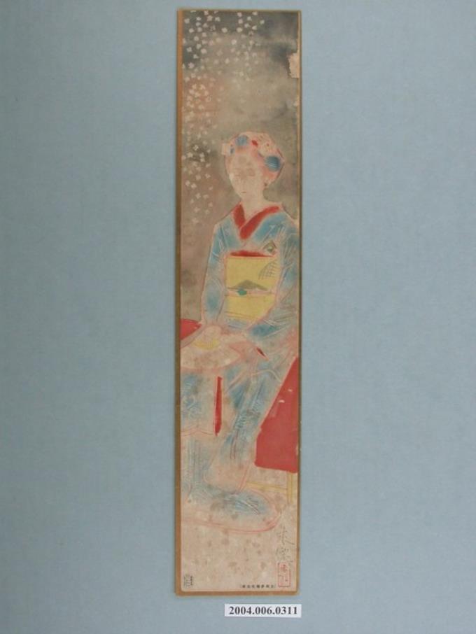 《主婦之友》(新年號)附錄〈花鳥‧山水‧美人畫短冊卅人集〉之生田花朝繪美人圖