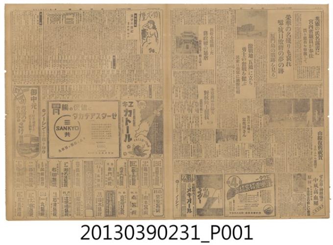 臺灣新聞社出版《臺灣新聞》昭和14年10月4日