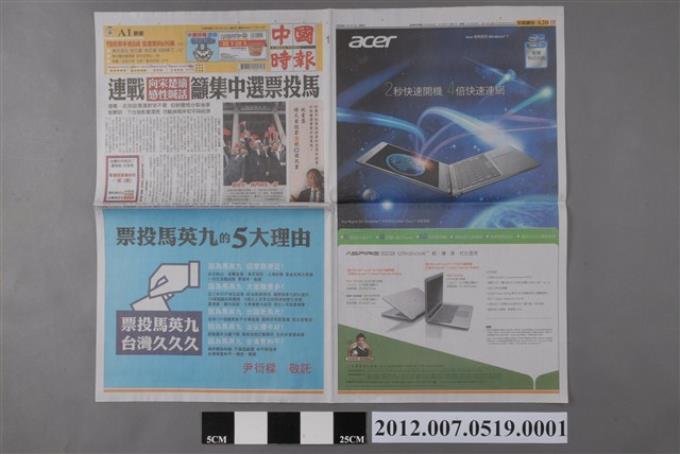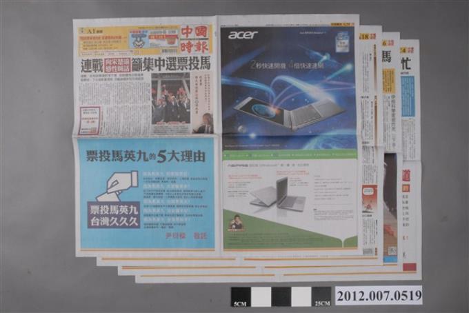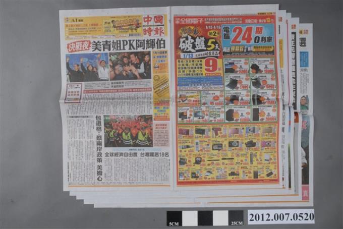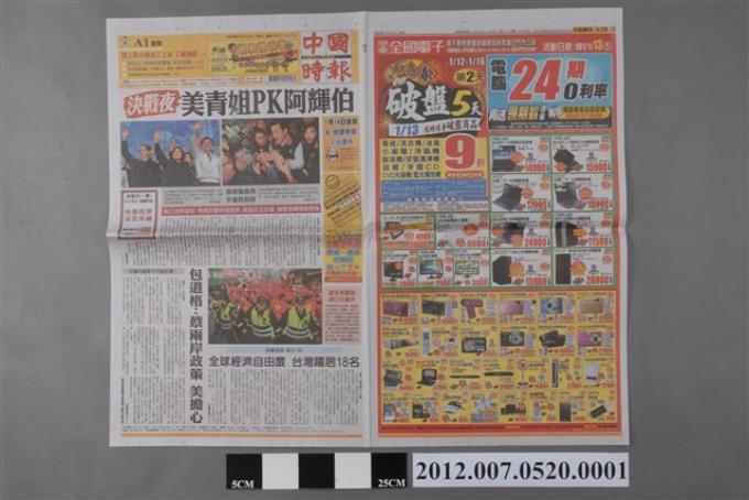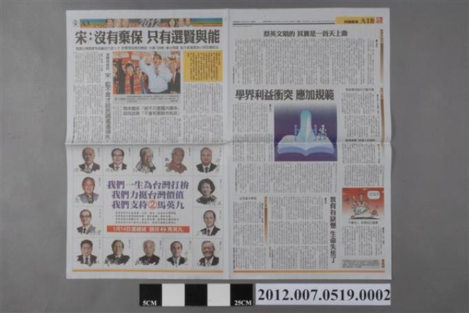 中國時報社出版《中國時報》2012年1月12日A1、A2、A19、A20版