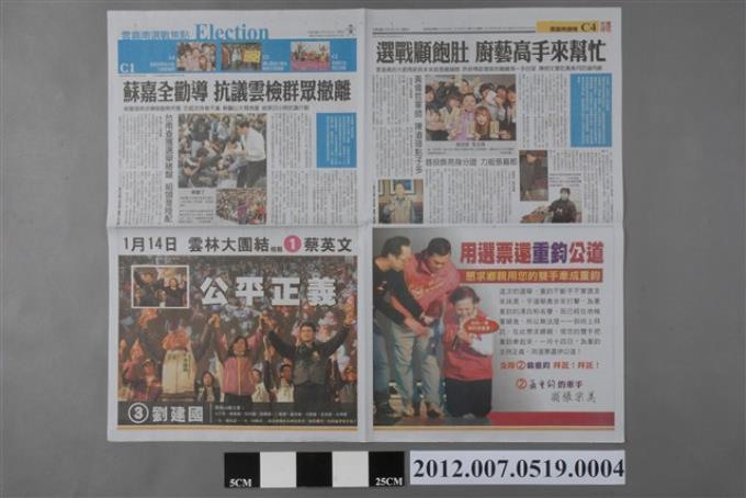 中國時報社出版《中國時報》2012年1月13日A1、A2、A19、A20版