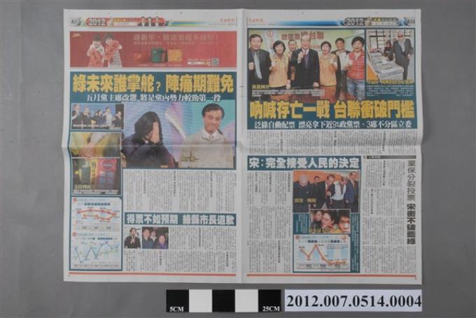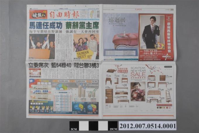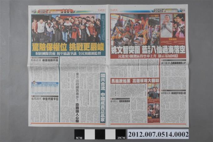 自由時報社出版《自由時報》2012年1月15日A1、A2、A17、A18版