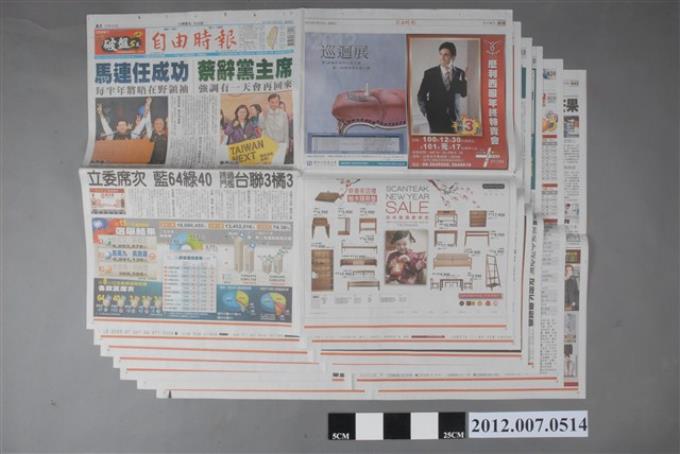 自由時報社出版《自由時報》2012年1月14日A7、A8、A11、A12版