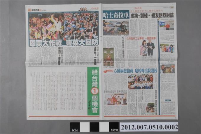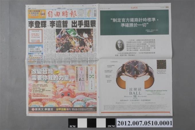 自由時報社出版《自由時報》2012年1月11日A1、A2、A15、A16版