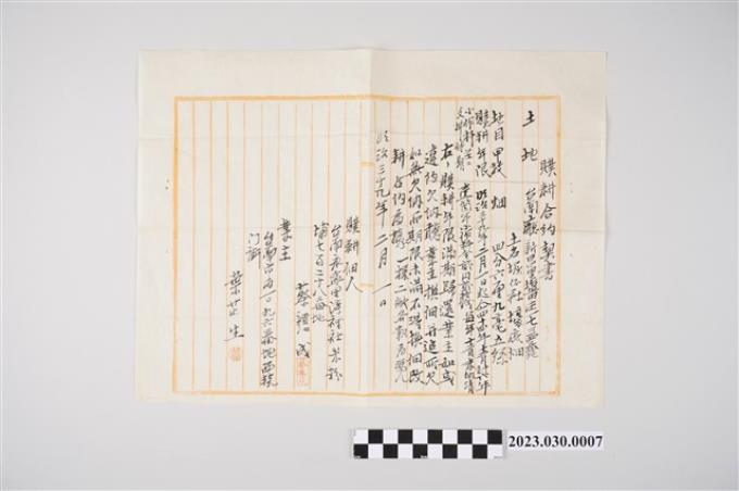 明治39年2月1日葉芷生與蔡戅成立贌耕合約契書