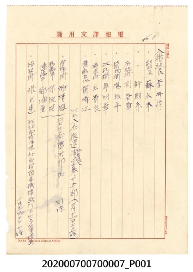 民國42年7月27日國防部總政治部設計委員會關於楊大龢、蔣宏麟涉及匪嫌情報電文