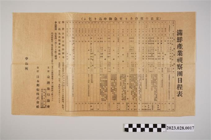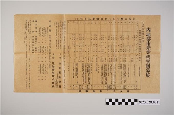 臺灣旅行協會主辦昭和12年第2回內地視察團日程表