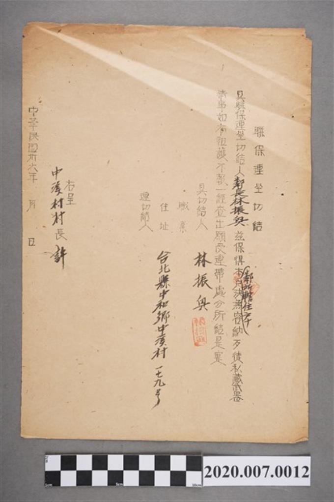 林振興228事件相關「聯保連坐」切結書