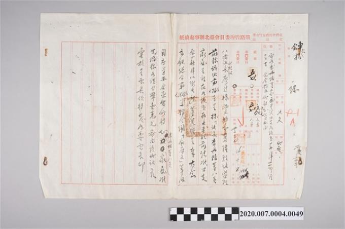 臺灣省鐵路管理委員會臺北辦事處〈二二八事變私人損失調查〉卷宗之書皮